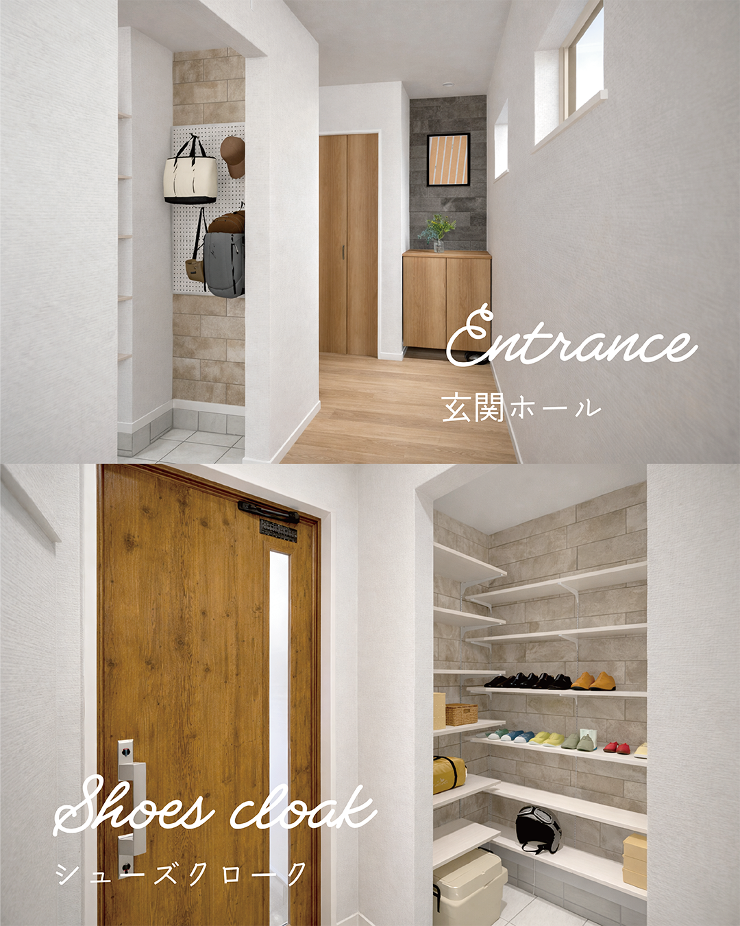 その横には収納力のある土間のシューズクローク
