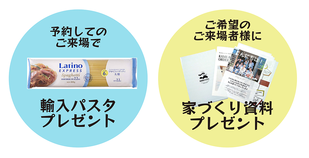 また、ご予約してご来場された方には輸入パスタをプレゼントしております!