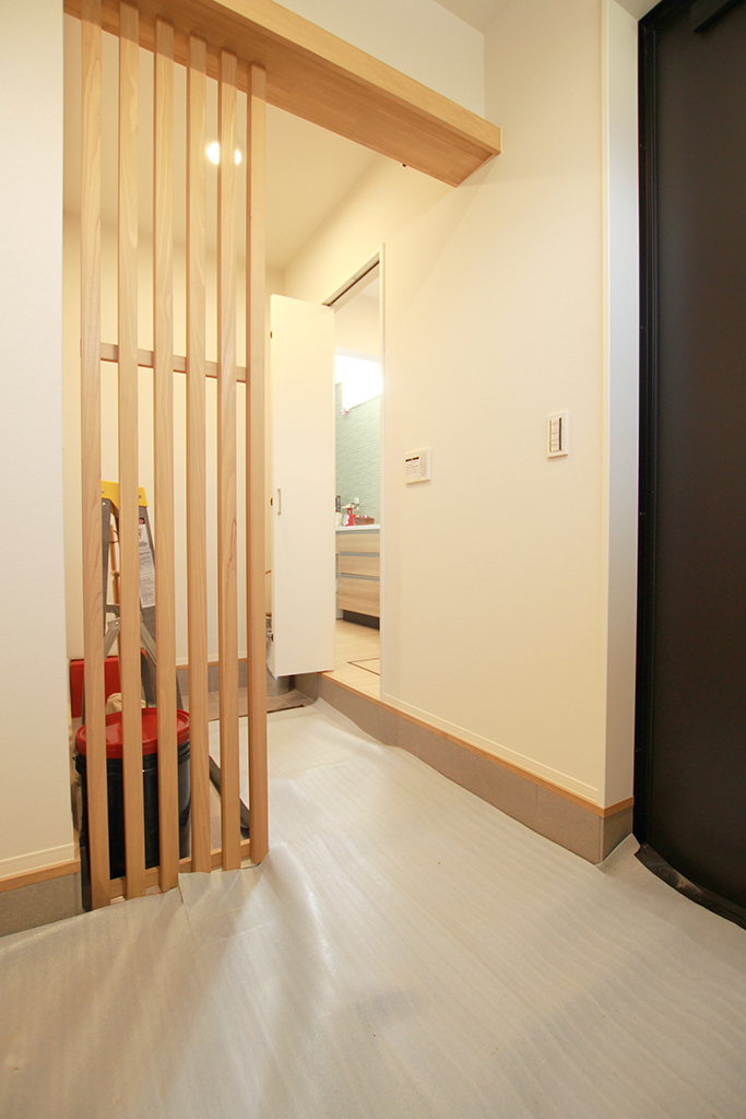 玄関ホール:タイル ブルックスCH 目地グレー/マリスト