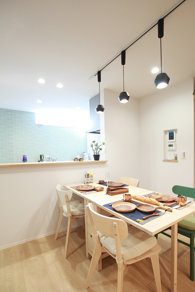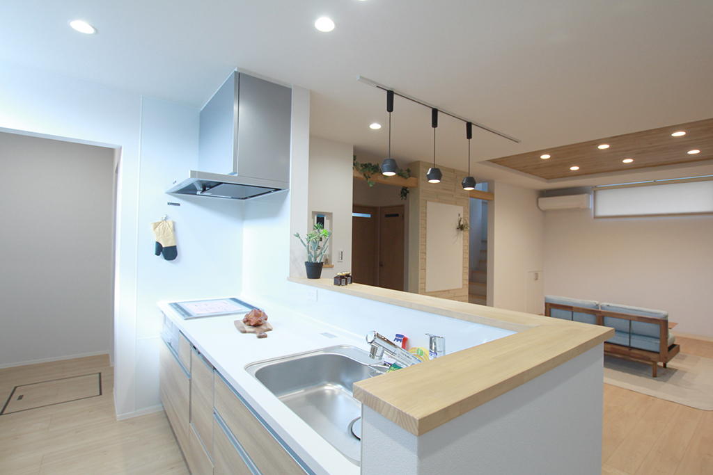 アメリカの家庭のようなキッチンスタイルとこだわりの照明がひかる家|M様邸
