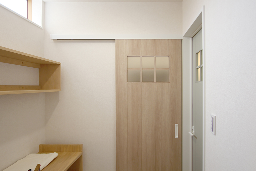 脱衣室 ドア:ラシッサD LHB 格子付テンダーオーク(LIXIL)