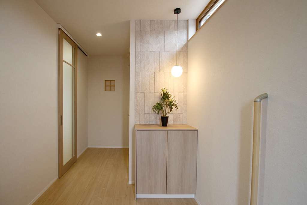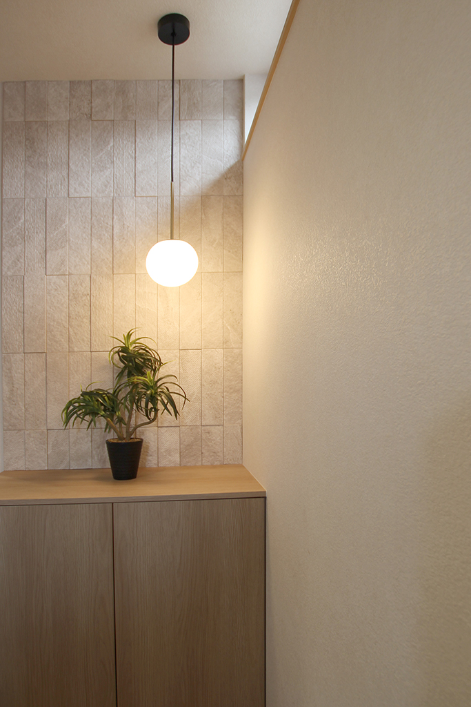 玄関ホール アクセントウォール:エコカラット リブスレート/アイボリー(LIXIL)